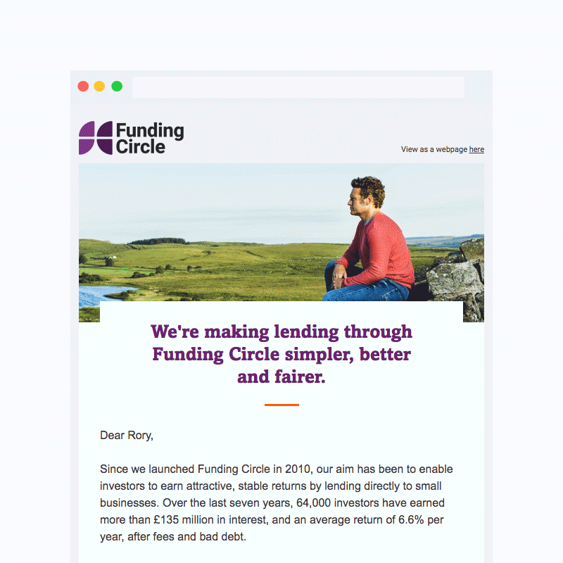 Introducing the Innovative Finance ISA to new and existing users was fundamentally important and an emphasis on education was identified as critical focuses on all our communication. I created a dynamic landing page, listing key features and a clear call to action, empathise on conversation and account curation. Before release users could register interest in the new product which helped us retain business confidence in the product.